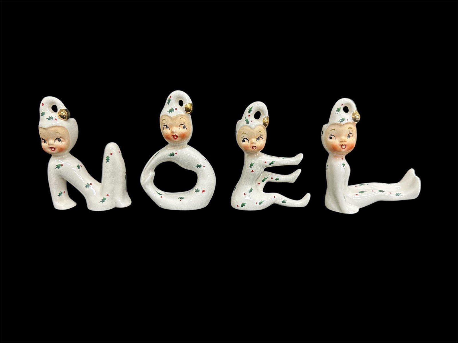 Holt Howard Rare Vintage 1958 Christmas Pixie Noel Candleholder Set