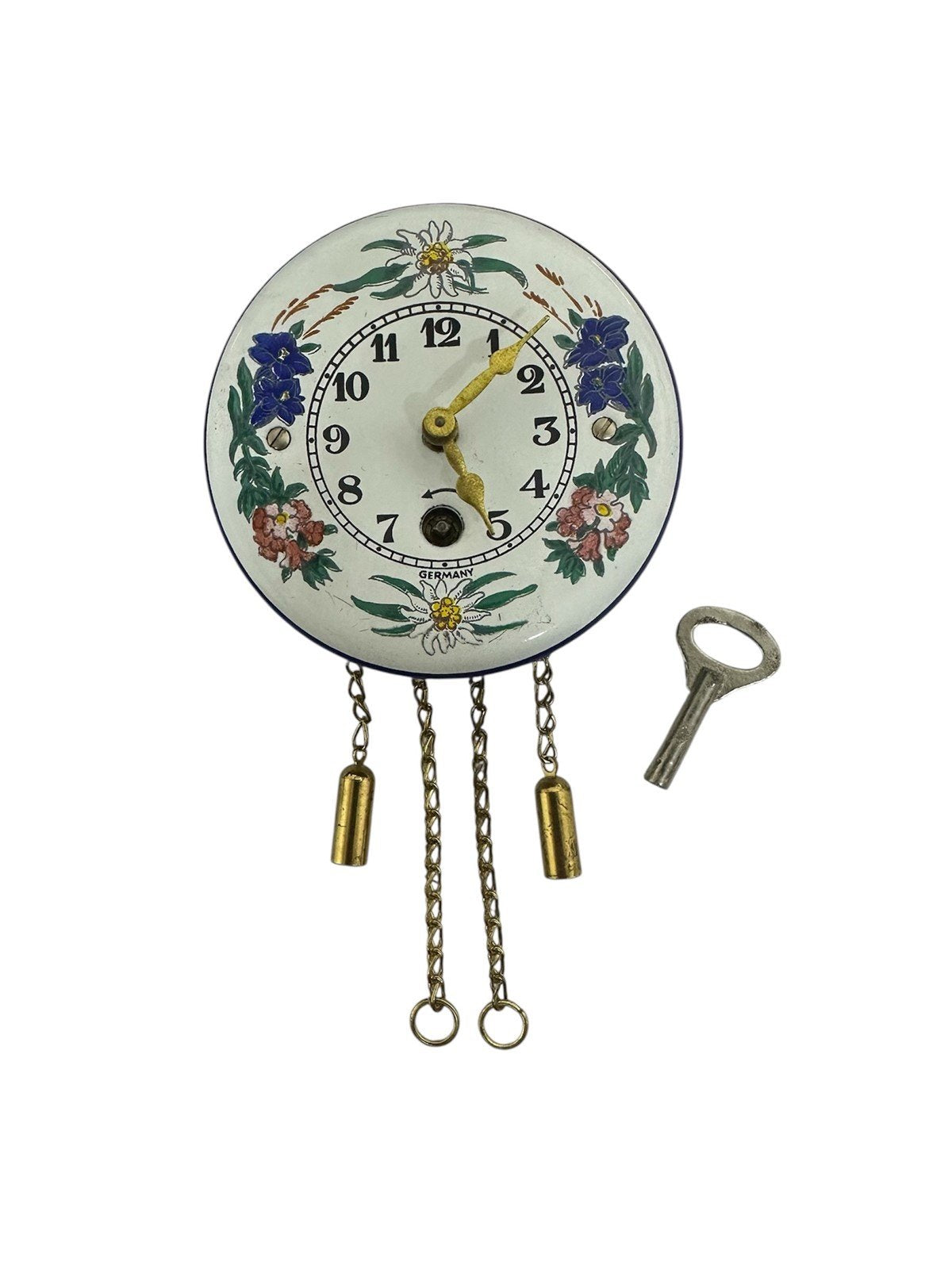 Miniature West Germany Wintermantle Wind-Up Floral Pendulum Clock