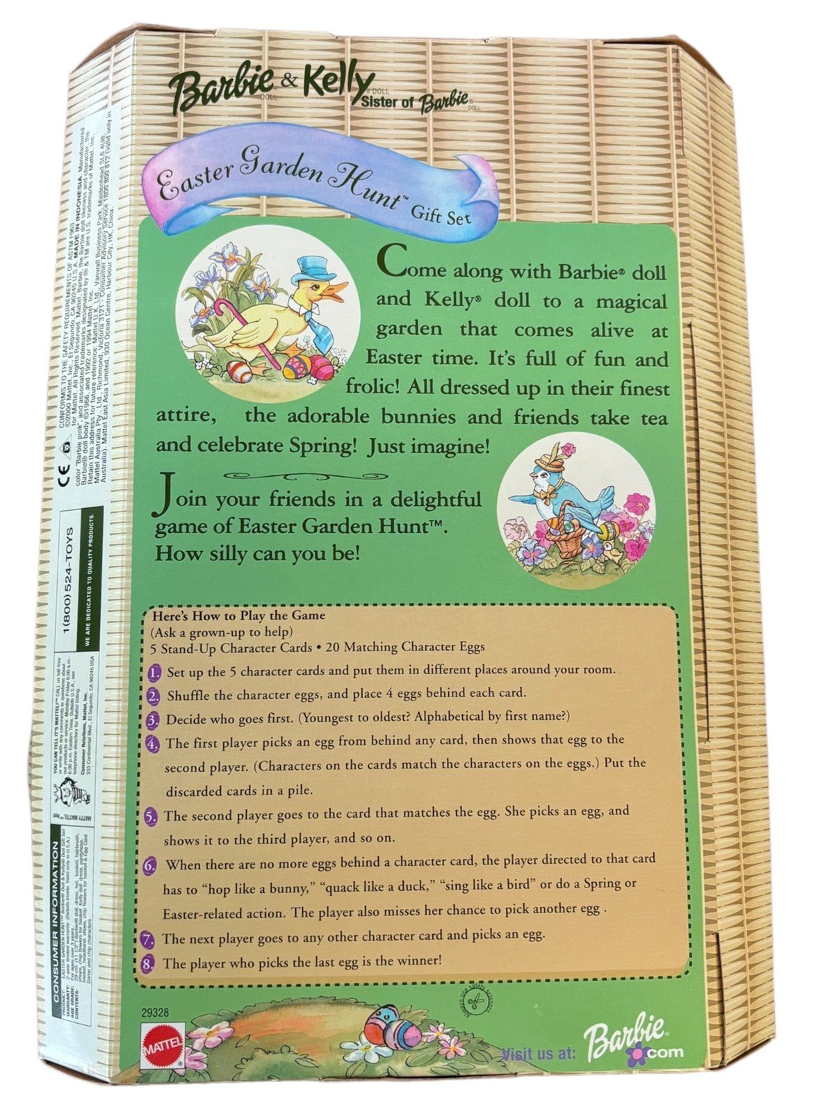 This is a 2000 Barbie & Kelly Easter garden hunt gift set. The box and barbies are in great condition. The box measures 14in x 12in x 4in. The box is unopened and sealed still.Take a look at the pictures for the best description. A photo is as good as a thousand words and is the best description of cosmetic condition. Use your ZOOM TOOL to best see this item! Please look closely at the photos for condition answers.