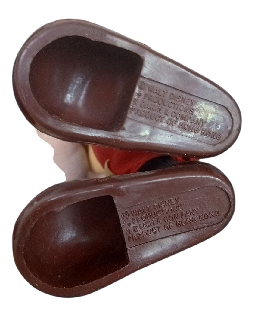 This is a vintage Mickey Mouse figure made by Dakin likely around the 1960s. Minor marks and scratches are visible. None of the limbs appear to be loose. This is a great item for any aspiring collector and is a perfect fit in any toy collection! This measures about 5" arm to arm and stands about 8" tall.