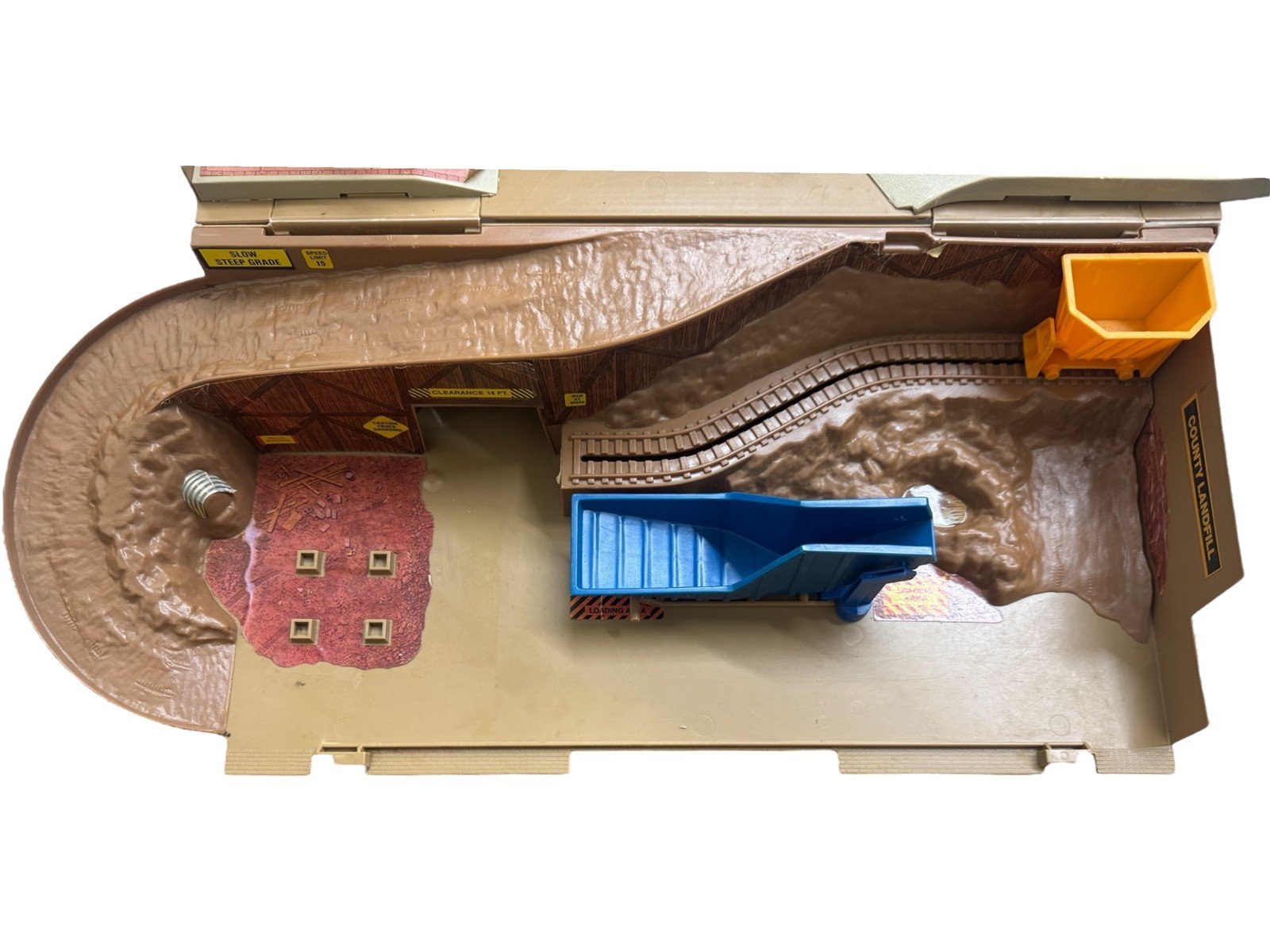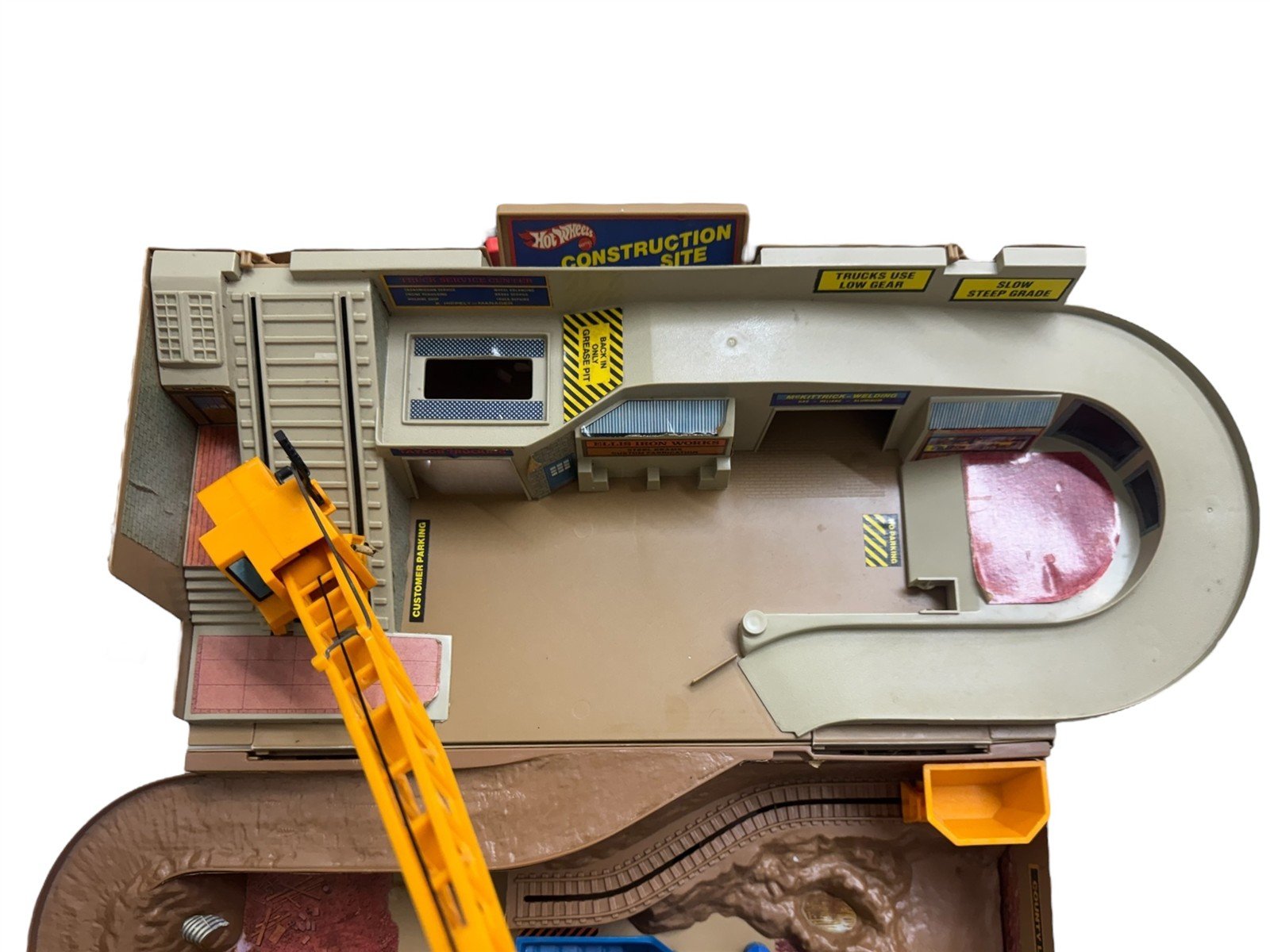 This is a beautiful vintage Hotwheels construction site sto & go folding play set from Mattel (1970's). This piece is in good condition, but there are few marks and peeling stickers. This set does not come with any Hotwheels cars or accessories. This is a perfect piece for any collector!Take a look at the pictures for the best description. A photo is as good as a thousand words and is the best description of cosmetic condition. Use your ZOOM TOOL to best see this item! Please look closely at the photos for condition answers.
