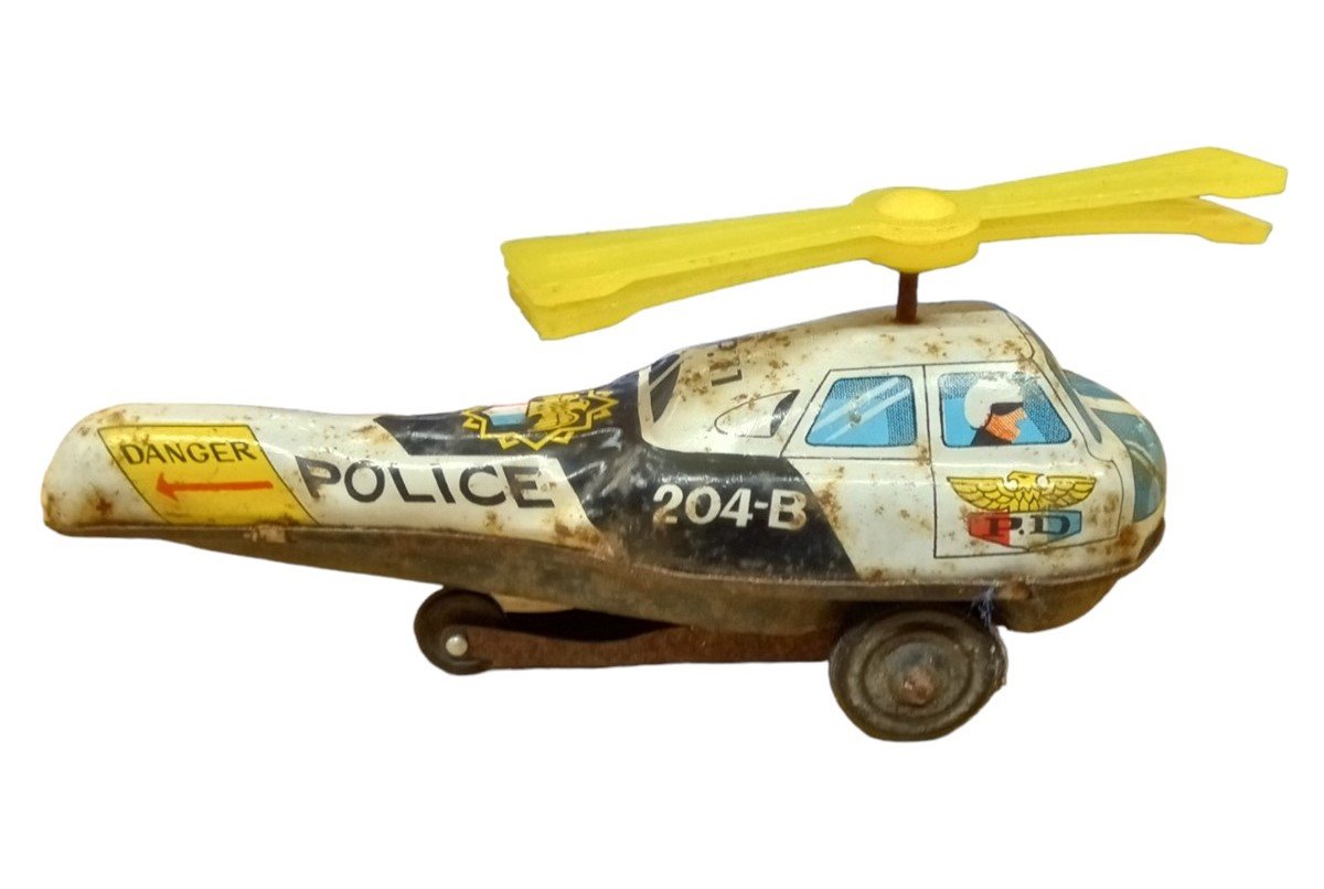 Japanese Police Helicopter Tin Friction Toy Vintage Collectible Nostalgic