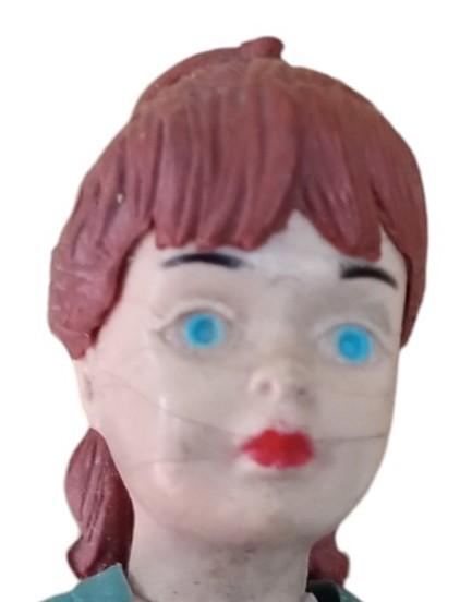 This is a vintage Twinkie doll made by MARX in the 1960s. Some minor marks and scratches are visible. This is a great item for any aspiring collector and is a perfect fit in any toy collection! This measures about 5" by 1" by 1".