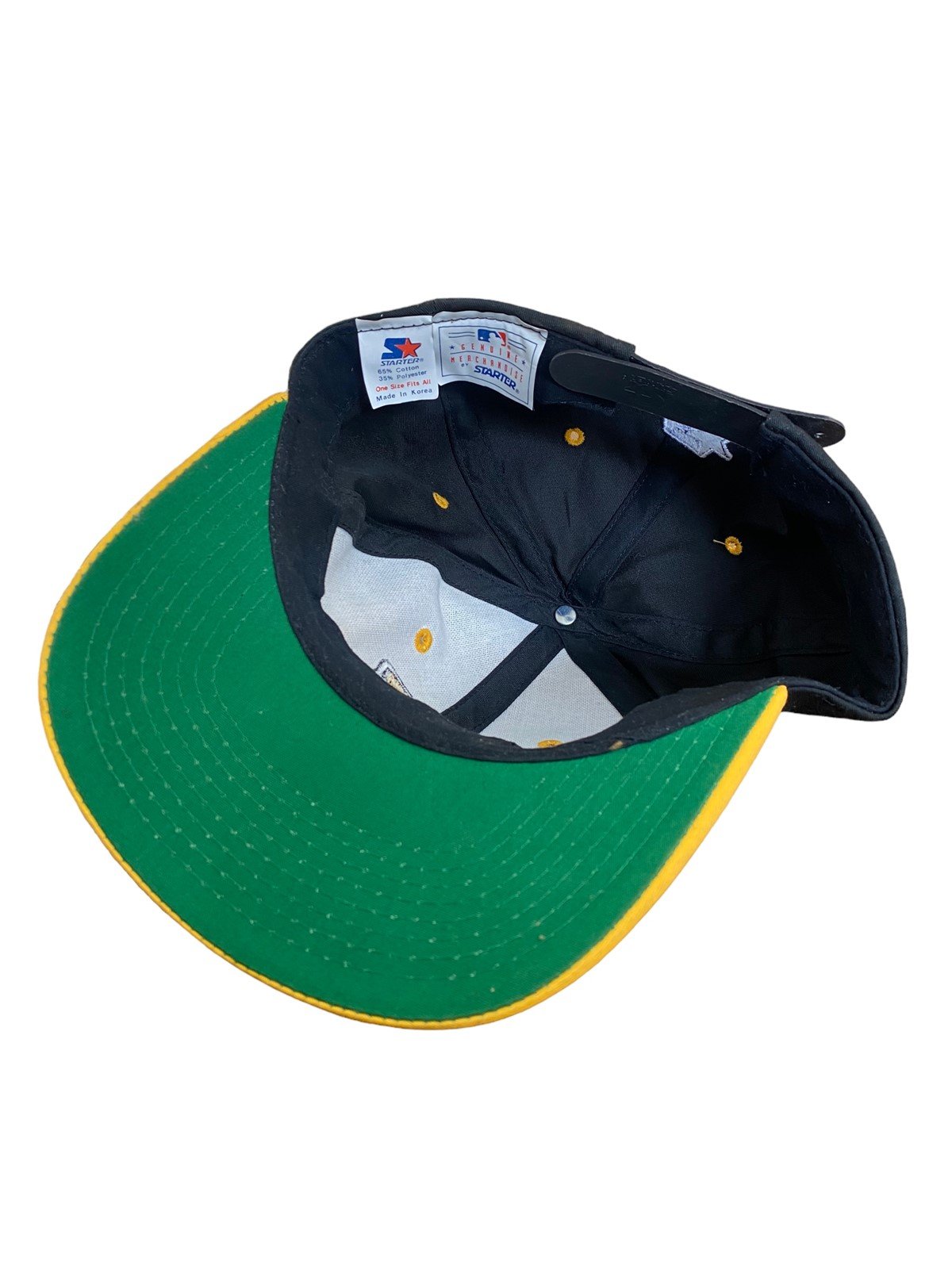 Vintage Pittsburgh Pirates 1994 baseball cap. Comes in a black, green and yellow color way. Starter MLB authentic genuine merchandise. Item has a few scuff marks that can easily be cleaned with a damp towel, no stains or sweat marks, looks unused. Snapback style hats are adjustable to fit any size head. Great collector's item!Take a look at the pictures for the best description. A photo is as good as a thousand words and is the best description of cosmetic condition. Use your ZOOM TOOL to best see this item! Please look closely at the photos for condition answers.