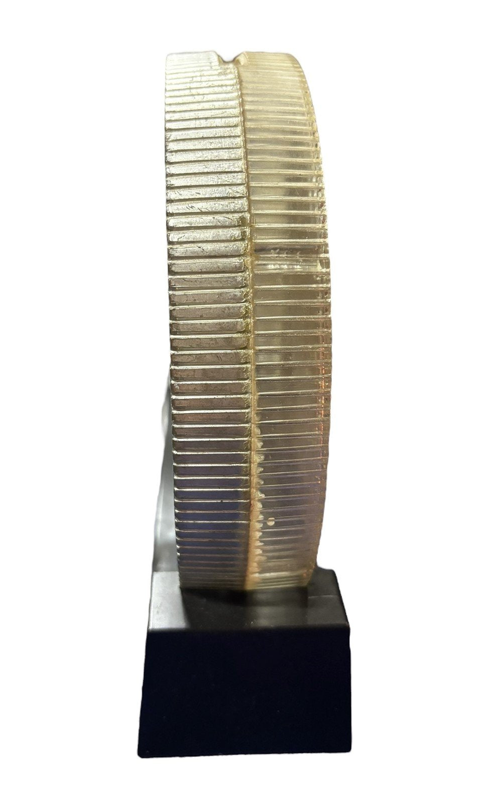 Awesome Coin Bank, Designed like a Morgan Silver Dollar. This is such a cool piece, especially for a coin collector! This piece makes great decor, but is also very functional. Measures 6" x 2" x 5.5". Great condition.Take a look at the pictures for the best description. A photo is as good as a thousand words and is the best description of cosmetic condition. Use your ZOOM TOOL to best see this item! Please look closely at the photos for condition answers.