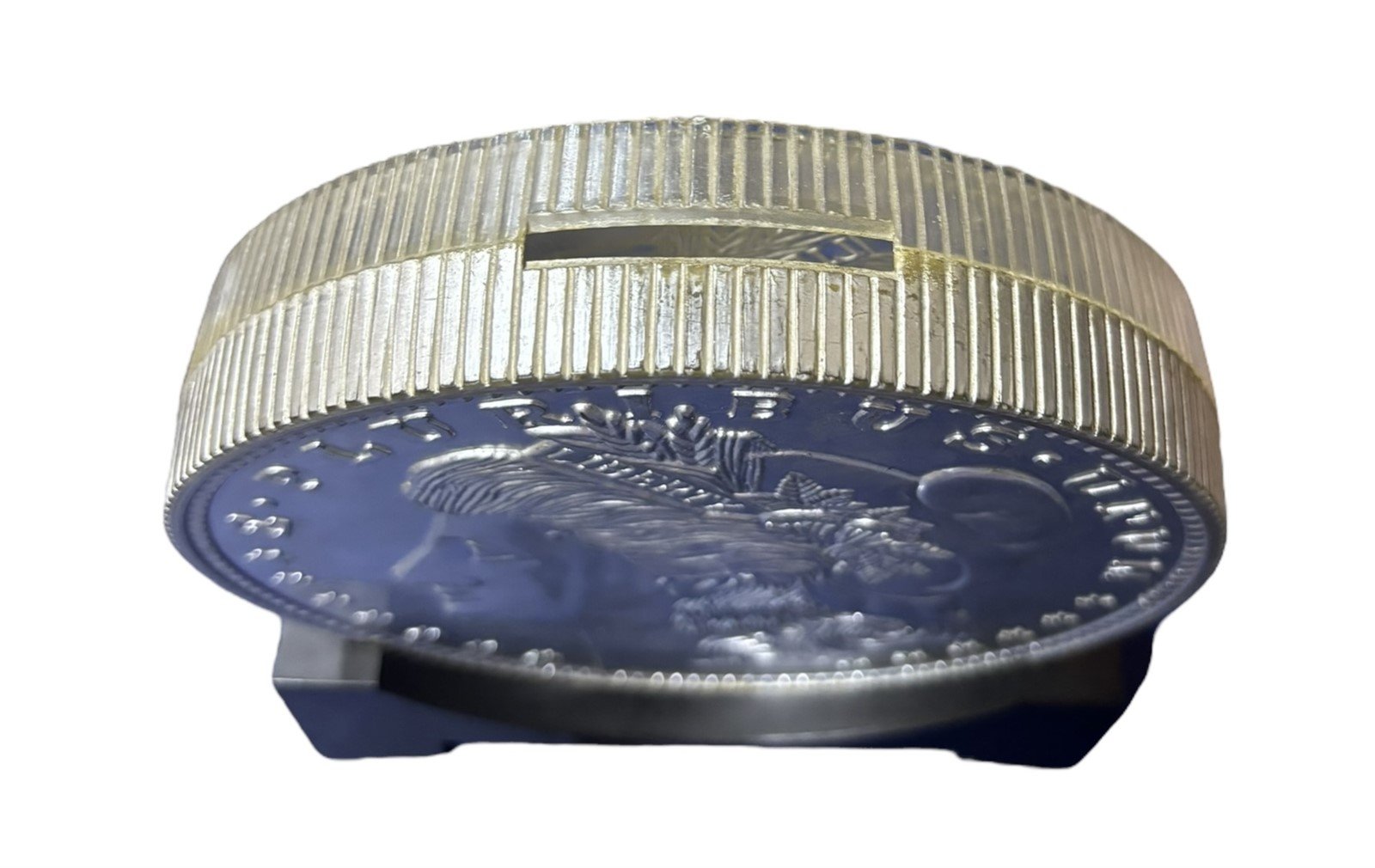 Morgan Silver Dollar Coin Bank Plastic E Pluribus Unum Decor