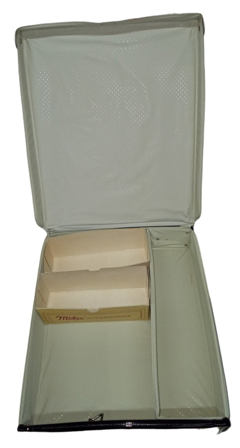This is a vintage Barbie carrying case made in the 1960s. It has some minor scratches and marks. This is a great item for any aspiring collector and is a perfect fit in any toy collection! This measures about 10" by 12" by 3".