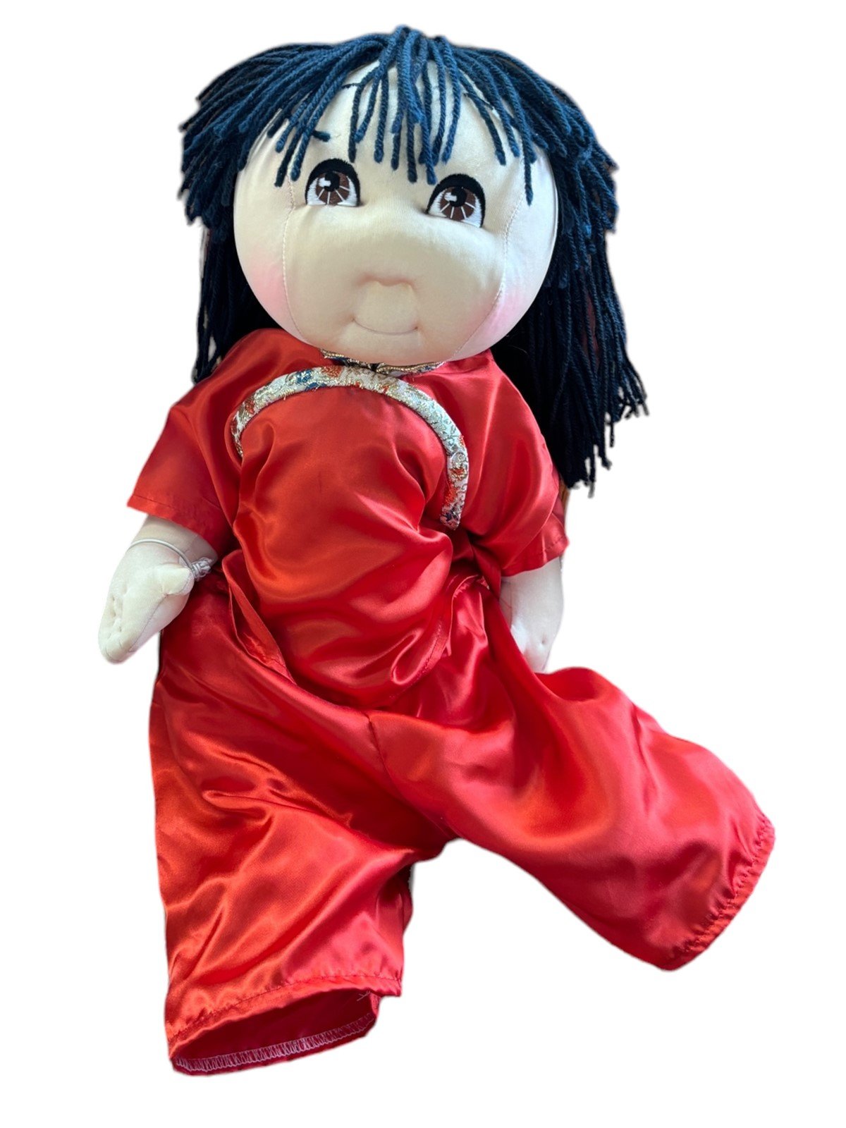 These are two vintage Rice Daddy Babies. They are both girl dolls and one (he solid red clothing one) has a passport. They each measure 20in x 8 1/2in x 8in. They are in great condition.Take a look at the pictures for the best description. A photo is as good as a thousand words and is the best description of cosmetic condition. Use your ZOOM TOOL to best see this item! Please look closely at the photos for condition answers.