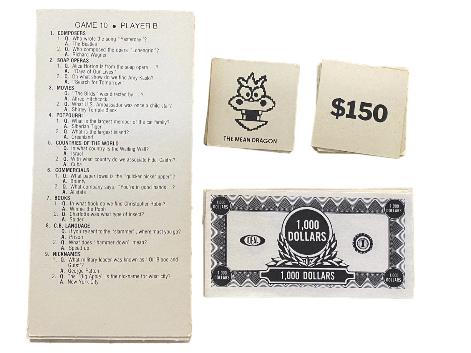 This game is Tic Tac Dough. It's based off a TV show It has all parts except for one x piece. Theres 5 O's, 4 X's, a game board, fake money, game stand, bonus cards, and questions. The game is 18 1/2in x 9 1/2in x 1 1/2in.Take a look at the pictures for the best description. A photo is as good as a thousand words and is the best description of cosmetic condition. Use your ZOOM TOOL to best see this item! Please look closely at the photos for condition answers.