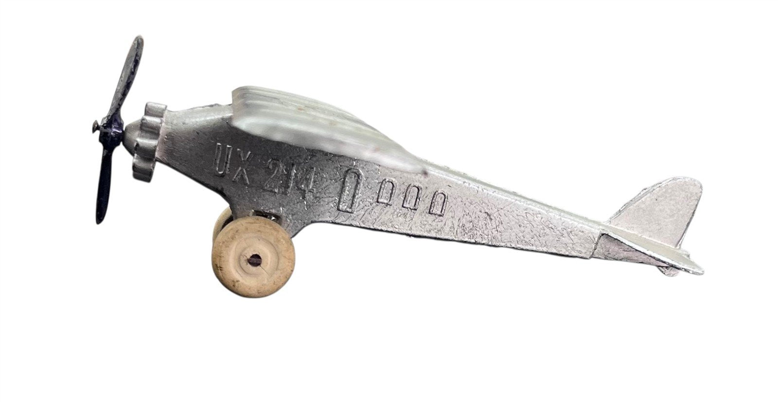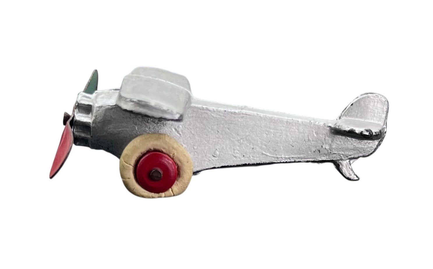 These are 3 tootsie toys brand toy planes. There is a red plane, and two silver planes. The larger planes each measure 4" x 4" x 1.25". The smaller silver plane measures 2.25" x 2.5" x 0.75". They are in good condition.Take a look at the pictures for the best description. A photo is as good as a thousand words and is the best description of cosmetic condition. Use your ZOOM TOOL to best see this item! Please look closely at the photos for condition answers.