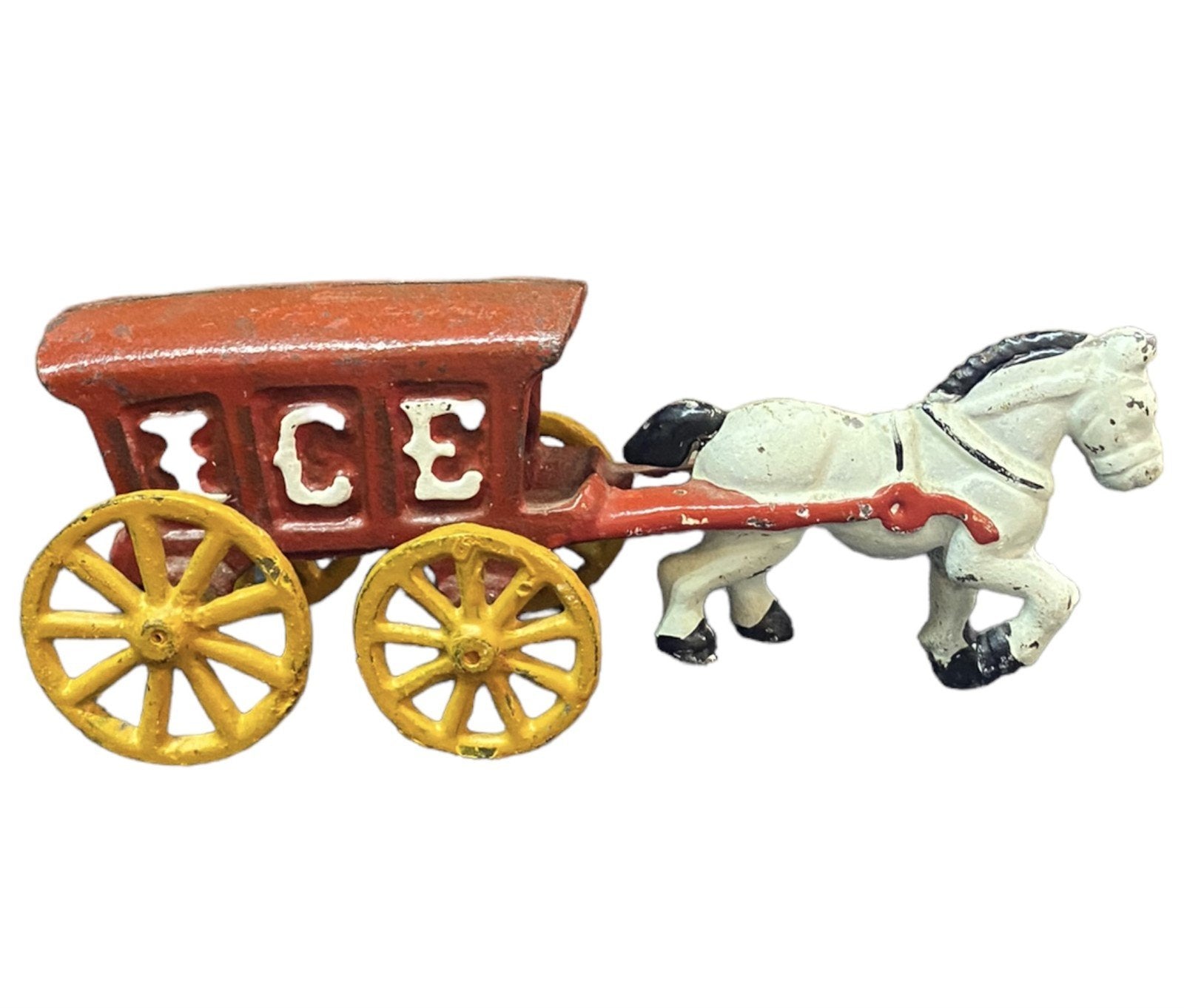 Cast Iron Horse Drawn Ice Truck Antique Wagon with Horse Vintage 1 Piece