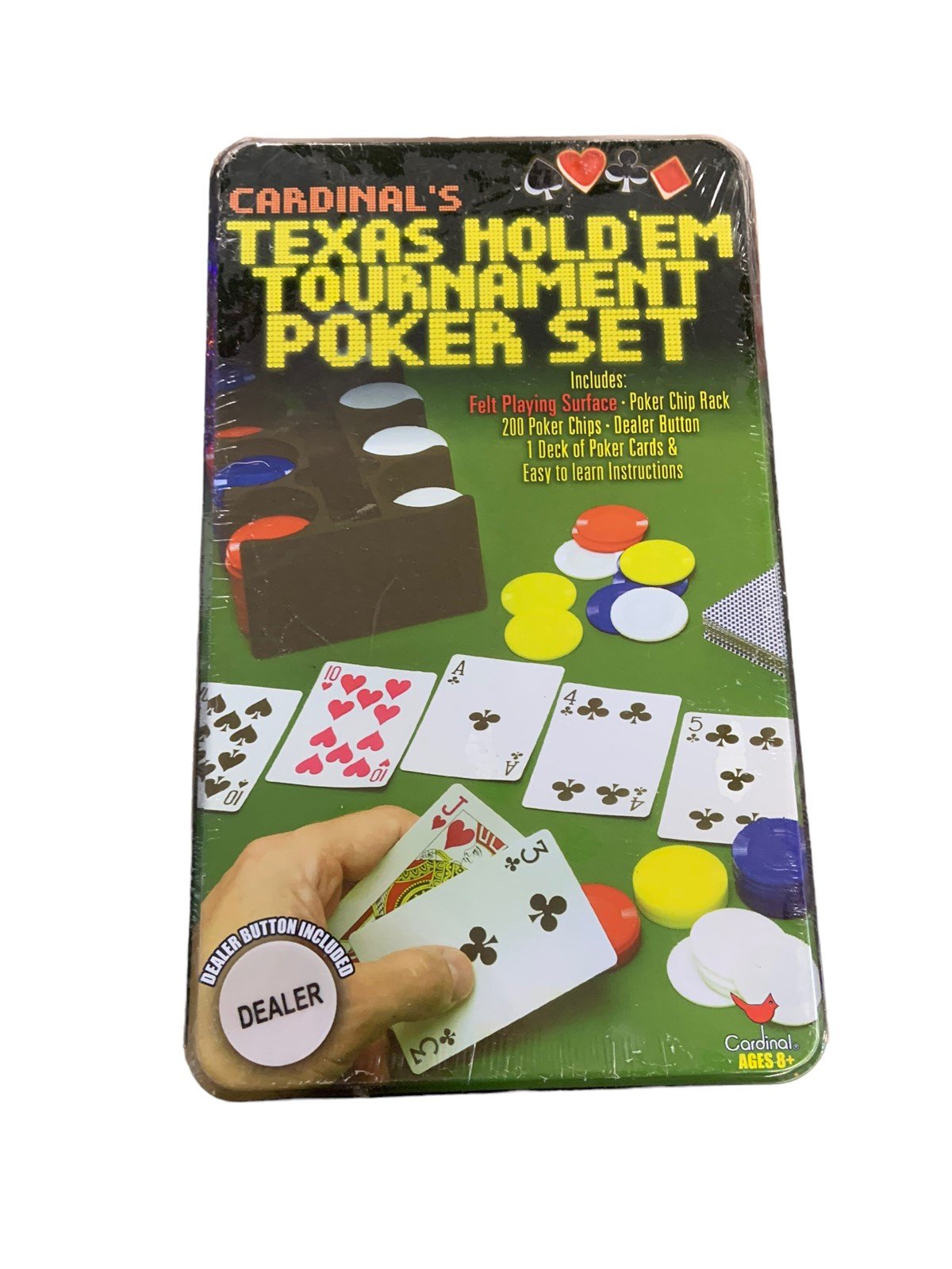 Texas Hold Em Poker Set Cardinal's Sealed Game in Tin Cards Chips