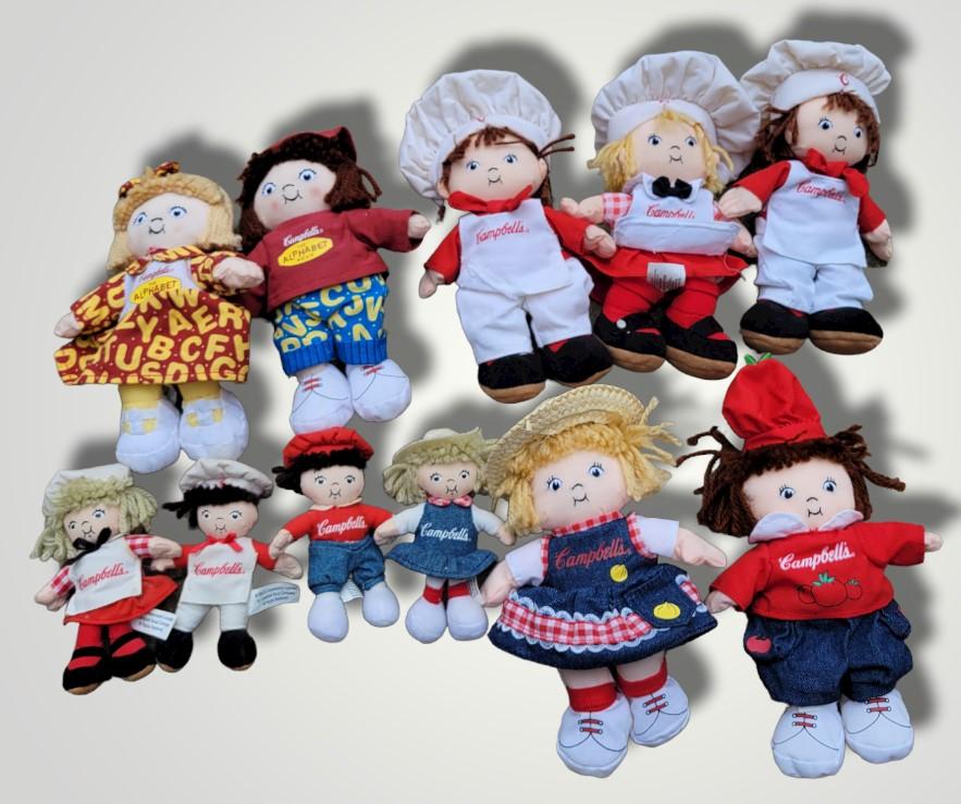 Vintage Campbell's Soup Kids Beanie Doll 1990's Nostalgia Large and Minis