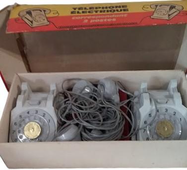 French Toy Telephones Antique Rotary Phone with Cords Vintage Set of 2