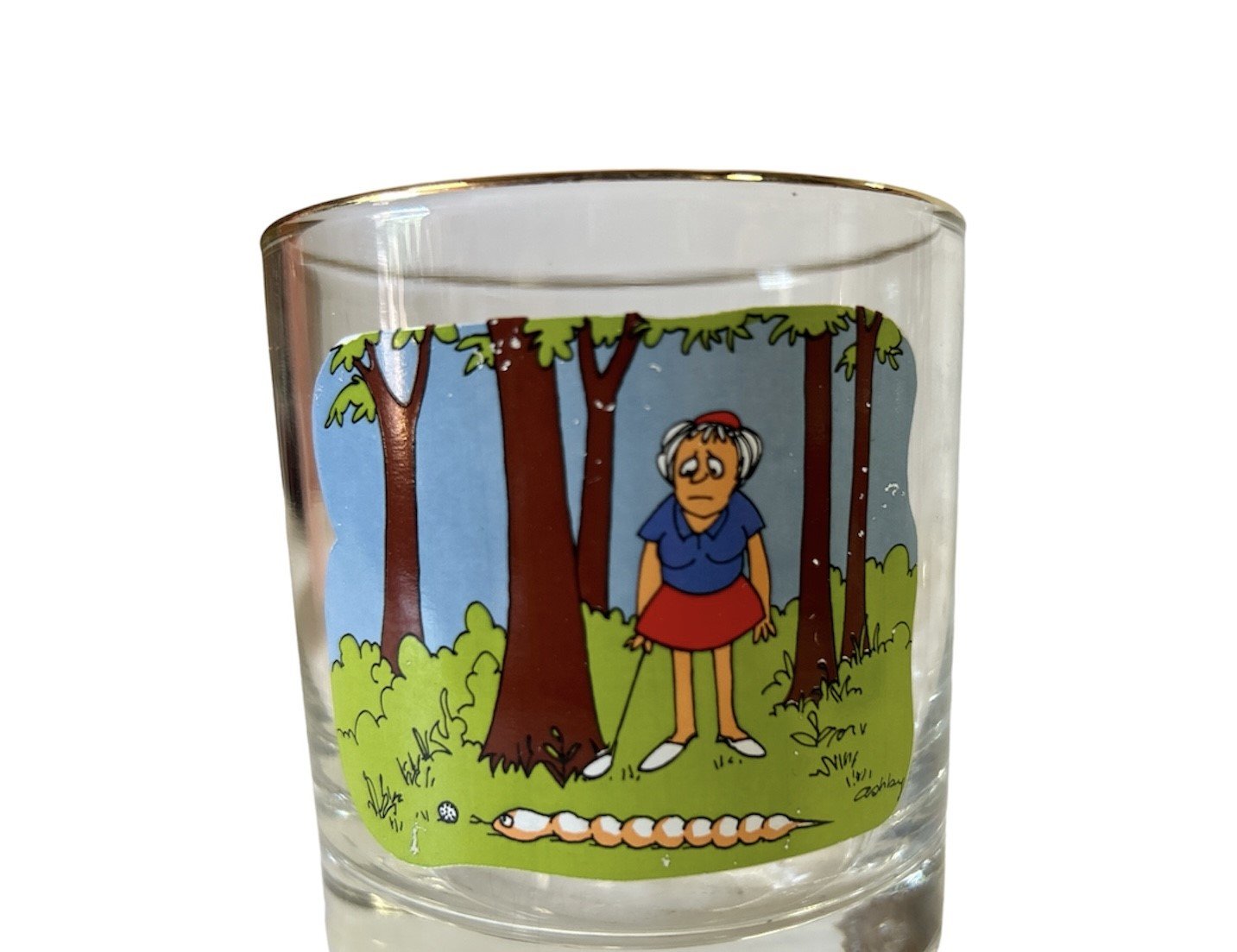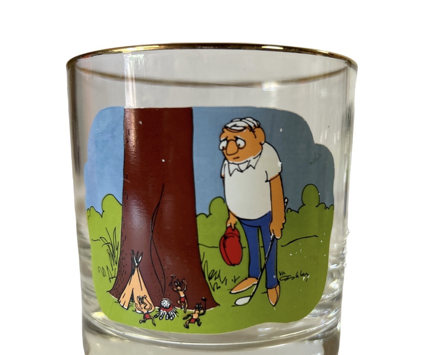 1970s Ashby Golf Comic Cartoon Vintage Artist 6pc Set of Barware Glasses