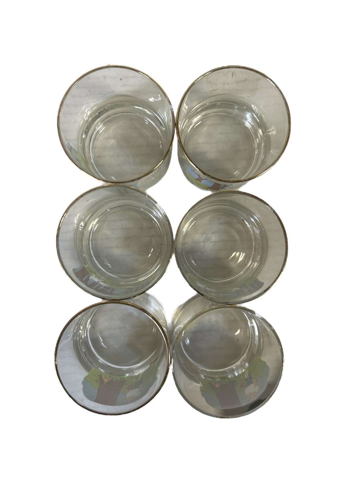 1970s Ashby Golf Comic Cartoon Vintage Artist 6pc Set of Barware Glasses. These super cool barware glasses would look awesome in your own collection! With a cute and nostalgic vibe as well as a golden top rim, these glasses would definitely stand out. Furthermore, they can be used for anything... from whiskey to cocktail glasses! Cups measure 3.5" tall and 3.25" in diameter.Take a look at the pictures for the best description. A photo is as good as a thousand words and is the best description of cosmetic condition. Use your ZOOM TOOL to best see this item! Please look closely at the photos for condition answers.