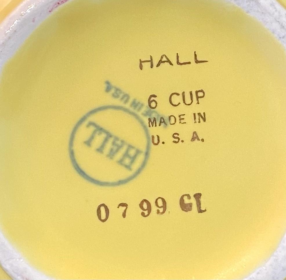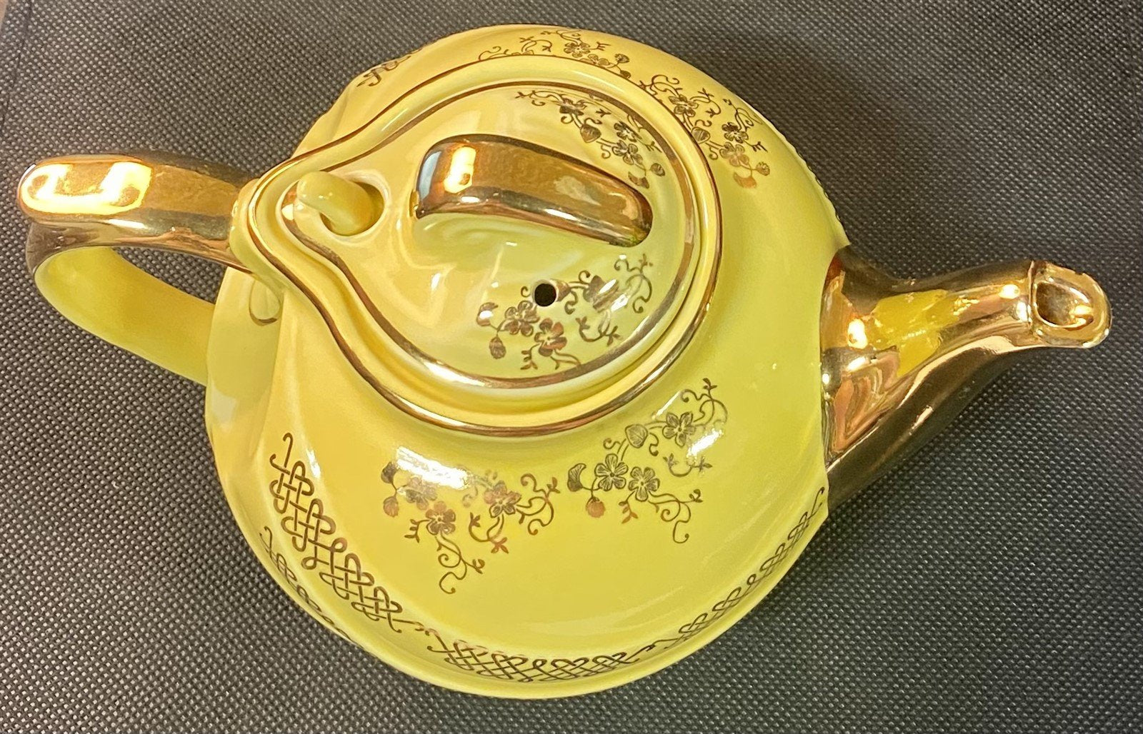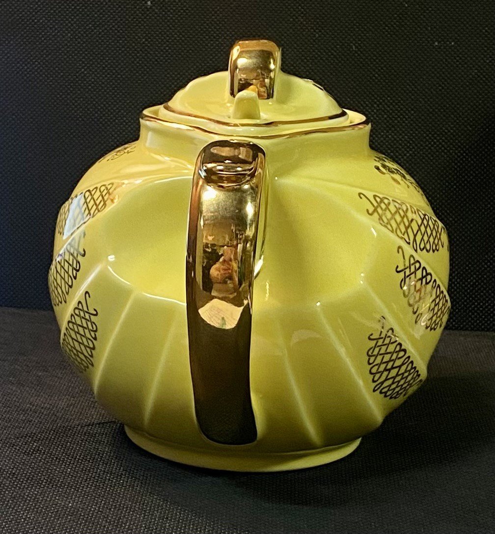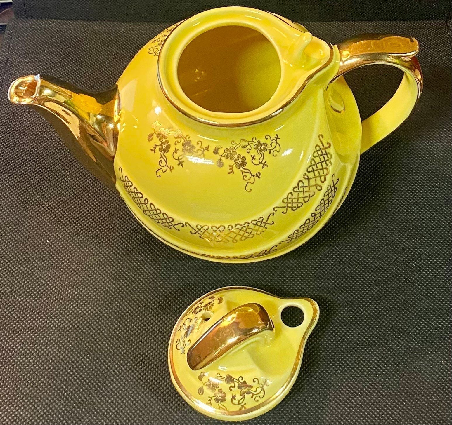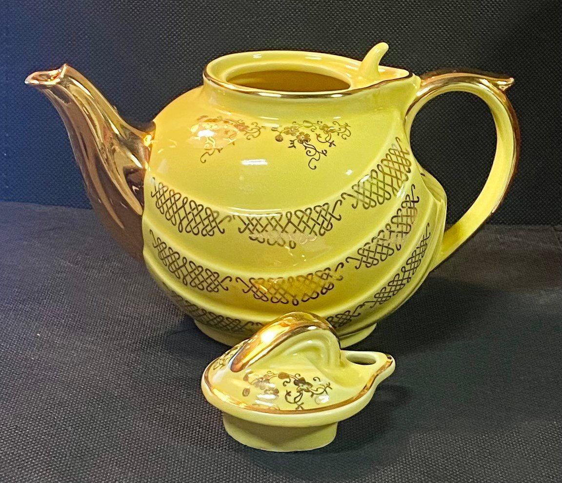 6 Cup Hall China Canary Yellow w / Gold Design "Parade" Gold Label Series Teapot