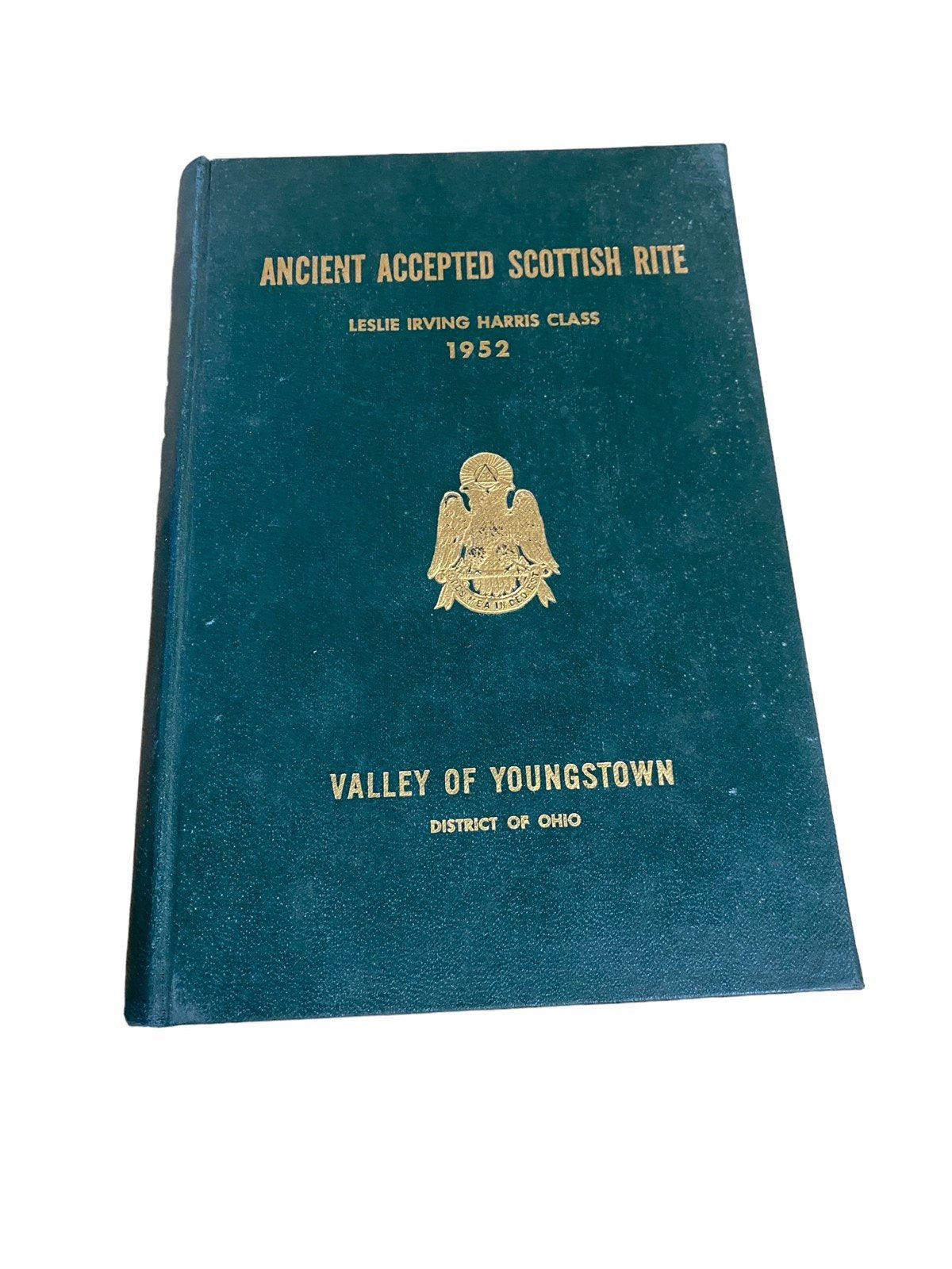 Set of 2 Masonic Ancient Accepted Scottish Rite Pamphlets/ class of 1956-1952 books. These pamplets are filled with pages about each specific member of those years, as well as their picture, date of birth and credentials. These come from the Masonic Temple in Youngstown, Ohio. 8" long 6" wide.Take a look at the pictures for the best description. A photo is as good as a thousand words and is the best description of cosmetic condition. Use your ZOOM TOOL to best see this item! Please look closely at the photos for condition answers.