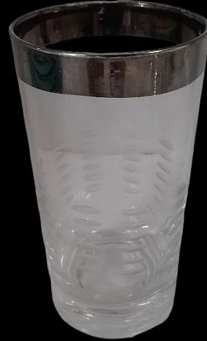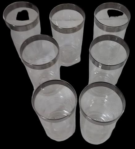 Antique Glass Tumblers Vintage with Silver Rim and Etched Design MCM (Set of 7)