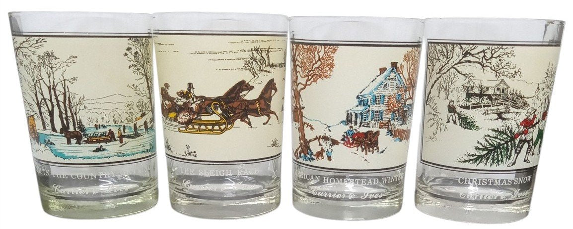 Arby's Currier & Ives Collectible Christmas Glasses 1981 Set Of 4 Retro Festive