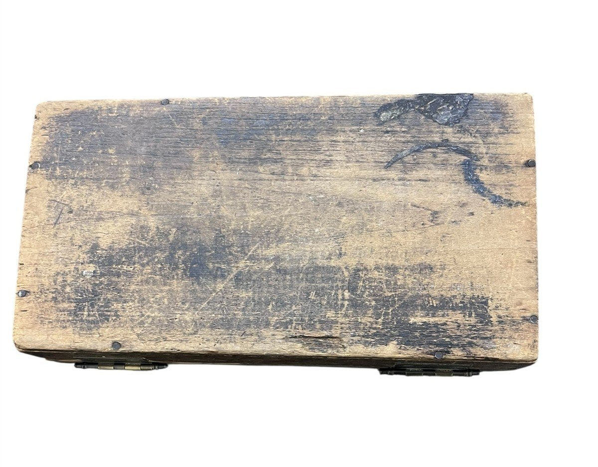 This is an antique set of auger drill bits in a wooden box. It includes bits from brands like Irwin, Russell Jennings, and James Swan. Includes 15 bits. The box measures 10.5" x 5.5" x 2.5". The bits are in great condition, the box is in good condition, but a bit weathered from age.Take a look at the pictures for the best description. A photo is as good as a thousand words and is the best description of cosmetic condition. Use your ZOOM TOOL to best see this item! Please look closely at the photos for condition answers.