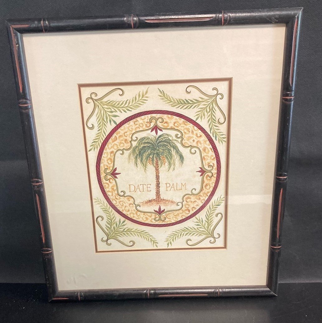 Bamboo Framed and Matted Date Palm Vintage Art