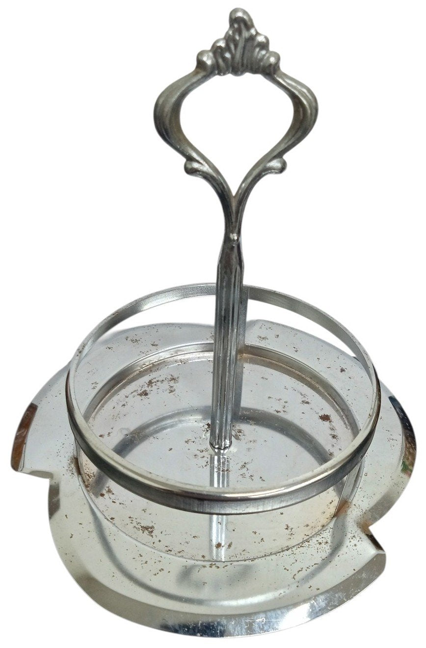 Condiment Glass Bottle Set With Carrier Vintage Collectible Kitchenware 1960s