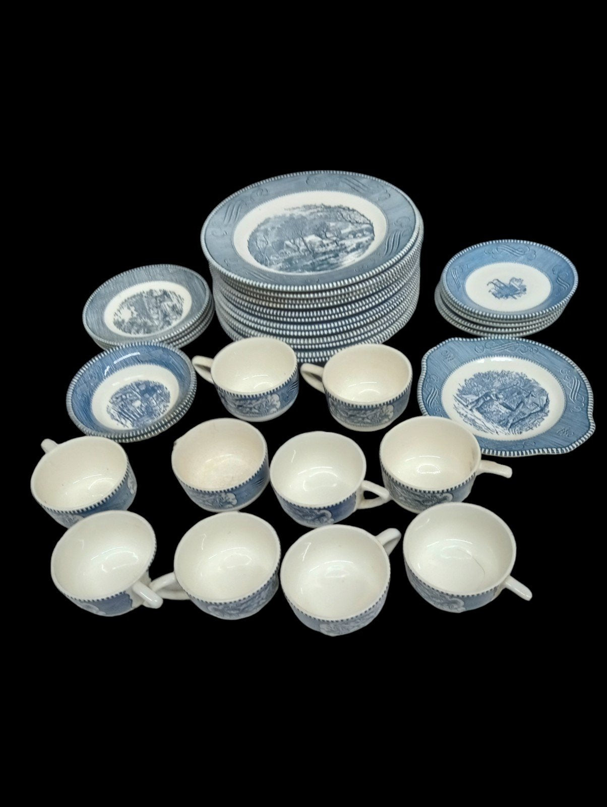 Currier and Ives Dinnerware Antique Royal China Vintage Cavalier Ironstone 34 pc