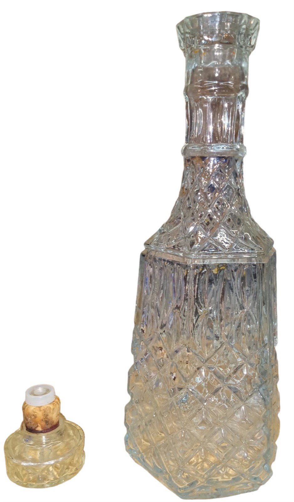 Diamond Cut Elegant Glass Decanter Antique Libbey Vintage Starburst Design