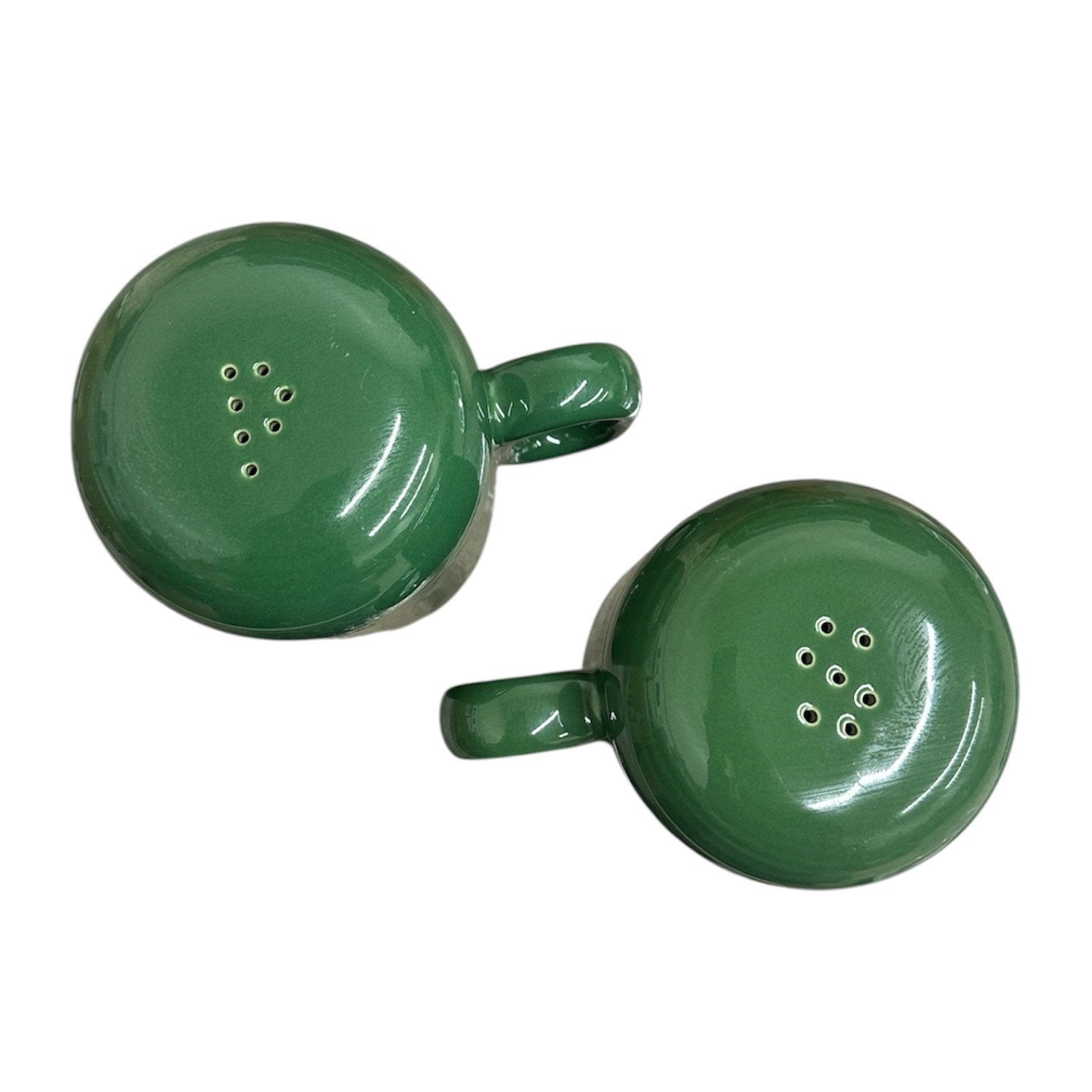 This is a set of Rangetop Salt and Pepper Shakers by Homer Laughlin Fiestaware in the color Jade; a beautiful shade of dark green! These shakers measure 4.5in tall with a 3in diameter. Made of ceramic and coated in a colorful lead-free glaze, these shakers are microwave, dishwasher, and oven safe! Each piece of our fiestaware is brand new and never used, please keep in mind that fiesta is pottery therefore some pieces may have minor imperfections that naturally occur during production. Add these shakers to your collection today!!!