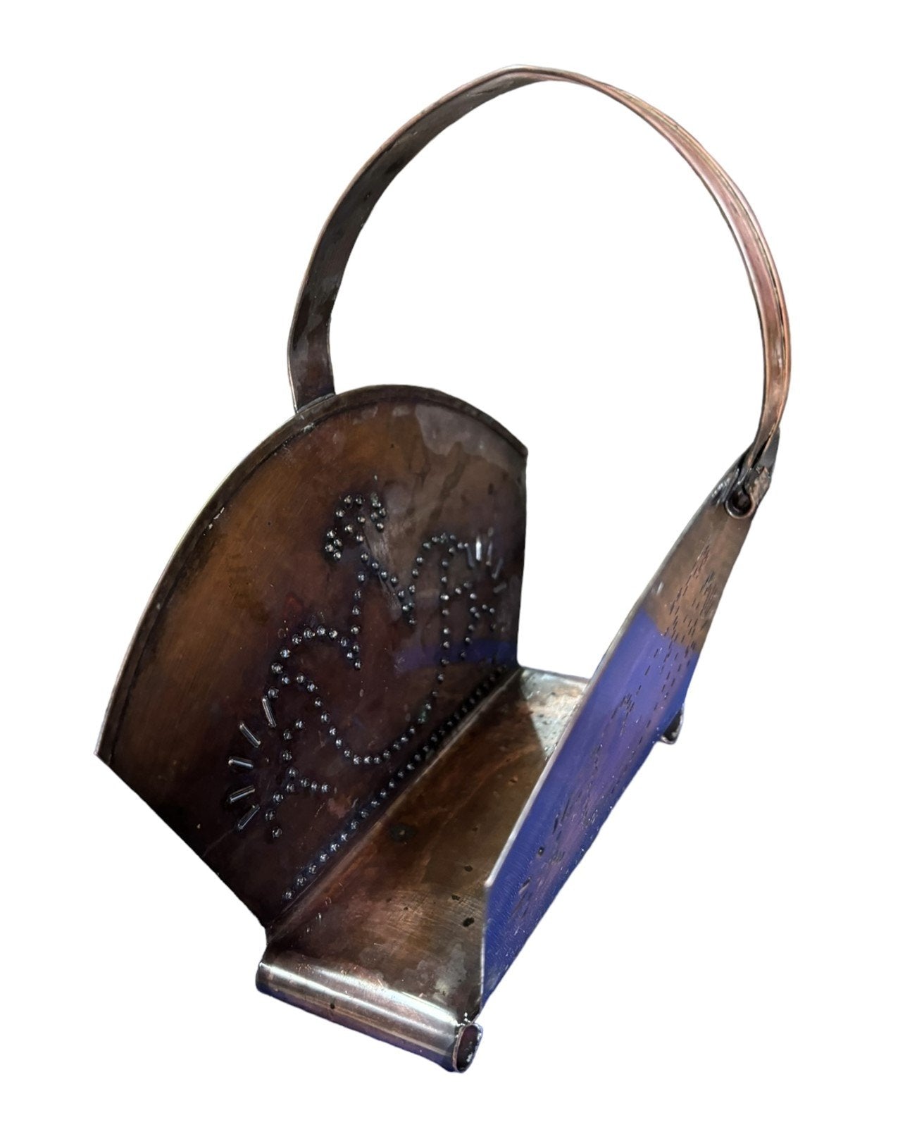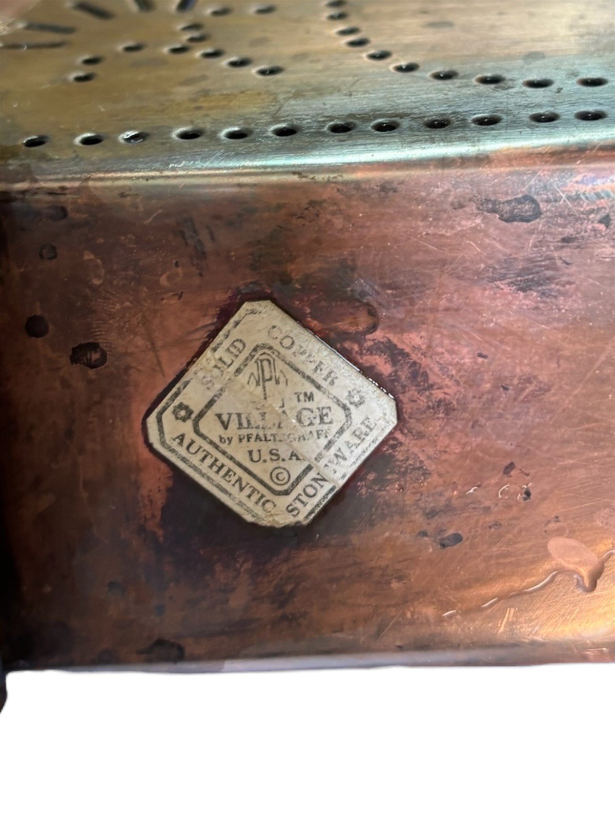 Super cool Pfaltzgraff Copper napkin Holder. This piece is very interesting and has great detailing. This is great for a rustic or farmhouse type aesthetic. It features a handle, curled bottom pedestals, and a floral poked engraving. Such a cool piece! Measures 6" x 7" x 4". This piece is amazing quality! Condition is as shown.Take a look at the pictures for the best description. A photo is as good as a thousand words and is the best description of cosmetic condition. Use your ZOOM TOOL to best see this item! Please look closely at the photos for condition answers.