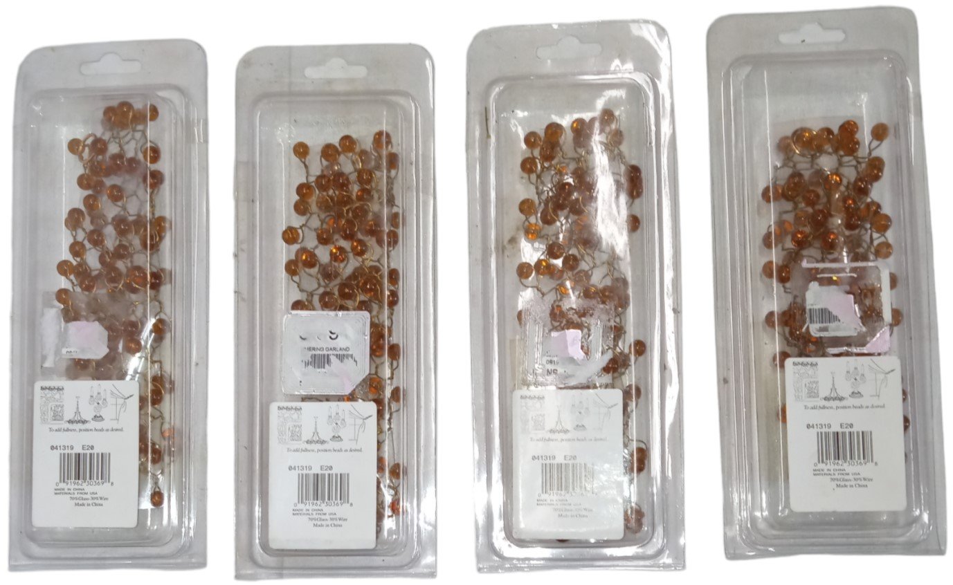 Shimmering Beaded Glass Tieback Vintage Conso Garland Amber 24" Set of 4