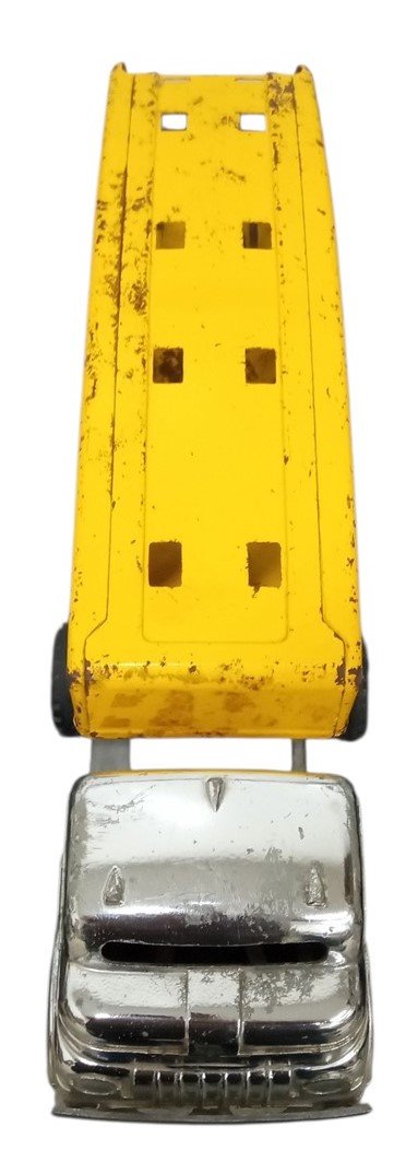 This is a vintage Structo Auto Transport truck & trailer likely made around the 1960s. Marks and scratches are visible as well as spots of rust. This is a great item for any aspiring collector and is a perfect fit in any toy collection! This measures about 22" by 5.5" by 5".