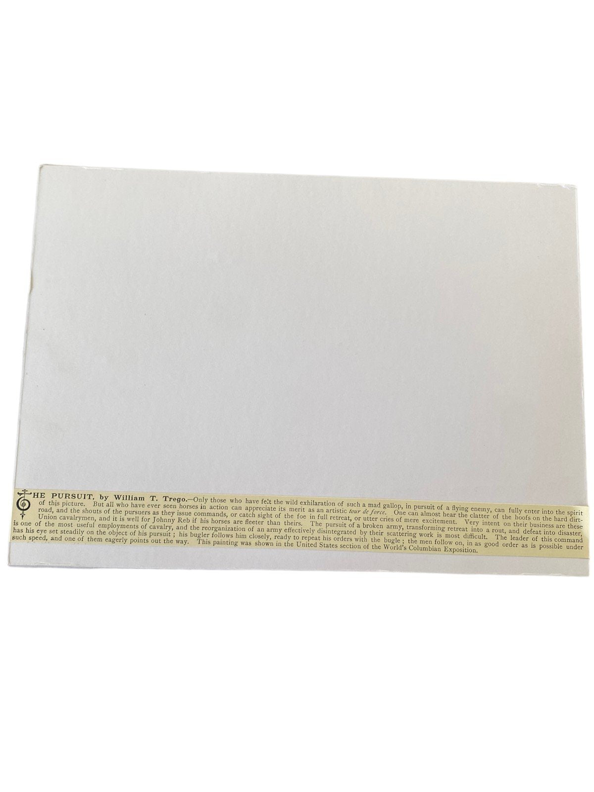 This is a framed print of the Pursuit by William T. Trego. This piece tells a story on the trill of galloping after an enemy. The front man is the leader and his soldiers await for his orders. This piece inside the frame is 17in x 1in x 13in.Take a look at the pictures for the best description. A photo is as good as a thousand words and is the best description of cosmetic condition. Use your ZOOM TOOL to best see this item! Please look closely at the photos for condition answers.