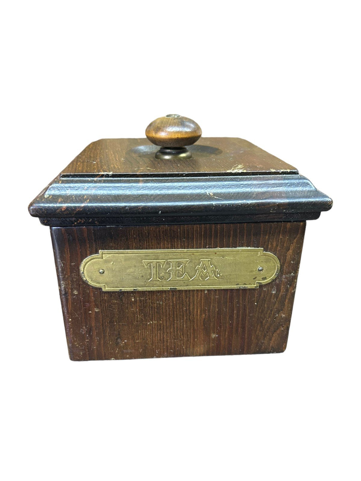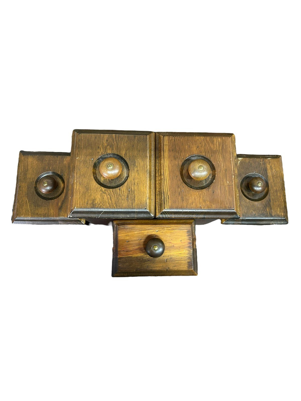 Vintage 5pc MCM Ma Leck Labeled Kitchen Ingredient Wooden Canisters with Lids