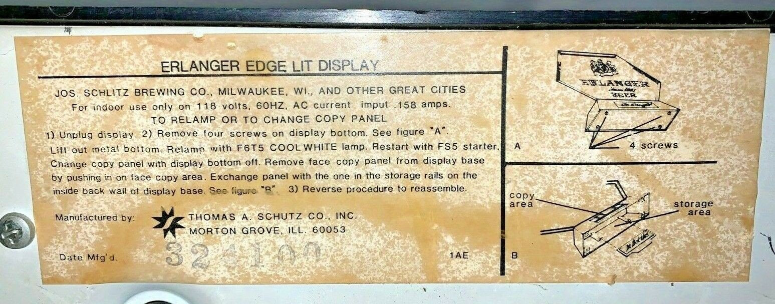 Vintage Erlanger Classic 1895 Beer Light Up Edge Lit Display